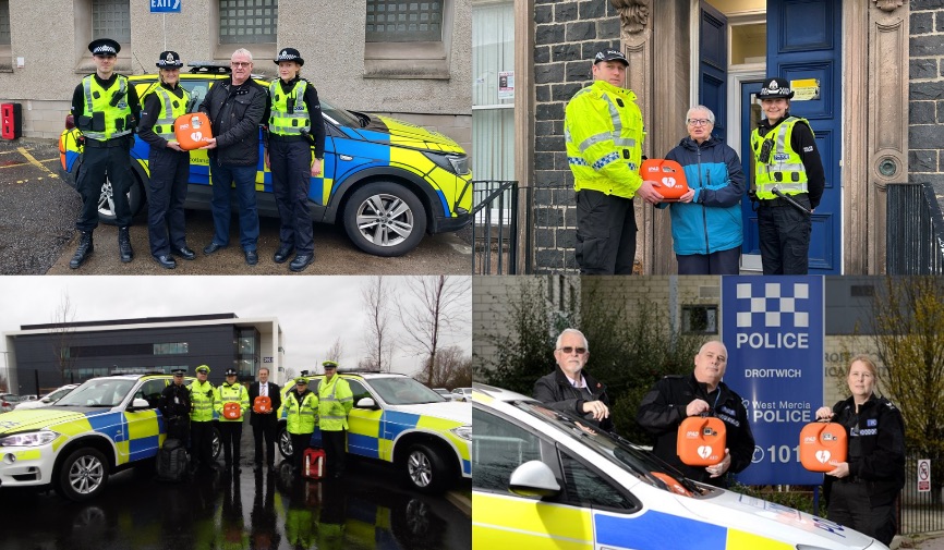 Sources: Top left: Police Scotland Forth Valley; Top right: Police Scotland North East; Bottom left: Cleveland Police; Bottom right: Droitwich AED donated five defibrillators to the Droitwich Police Safer Neighbourhood Team (SNT).